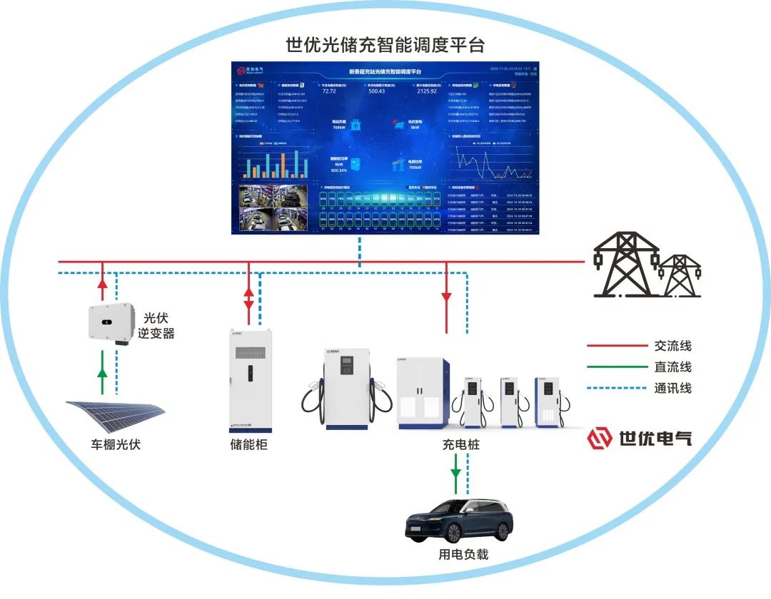 城發(fā)·世優(yōu)超級充電站配備了光伏發(fā)電、儲能、充電樁、自助洗車機等設備,并提供休息室和生活服務。此站旨在打造綠色、低碳、快速、舒適、安全的一站式充電體驗。光伏發(fā)電提供綠色能源,采用“自發(fā)自用,余電上網(wǎng)”模式,配合儲能峰谷運營提升場站效率;液冷超充終端最高功率600KW,實現(xiàn)“一秒一公里,一杯咖啡滿電出發(fā)”。湖南世優(yōu)電氣股份有限公司自主開發(fā)出世優(yōu)光儲充智能調(diào)度平臺,可根據(jù)場站能源及充電客戶情況給出最優(yōu)運營策略。